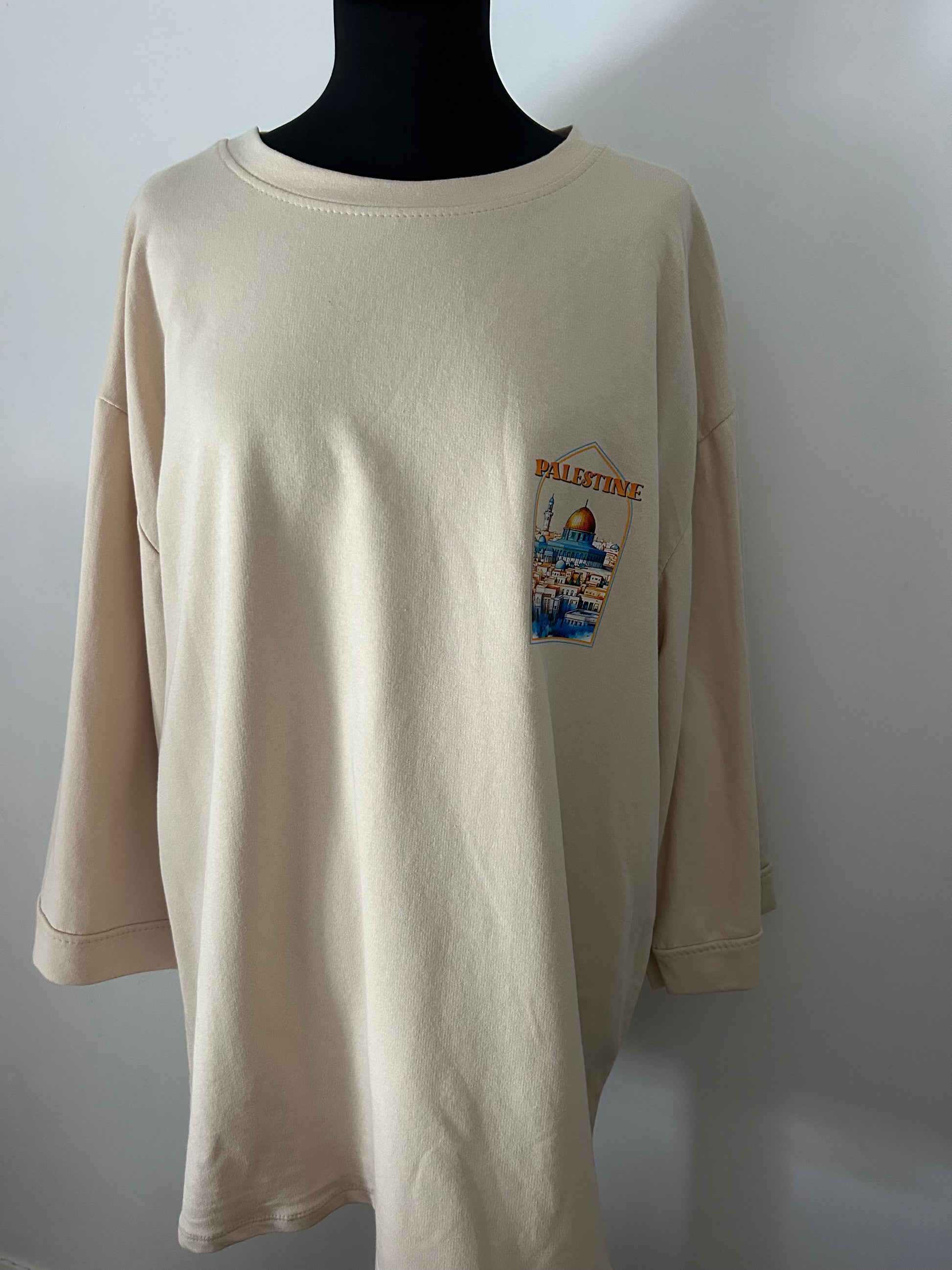 T-shirt à manches longue floqué Palestine devant et dans le dos